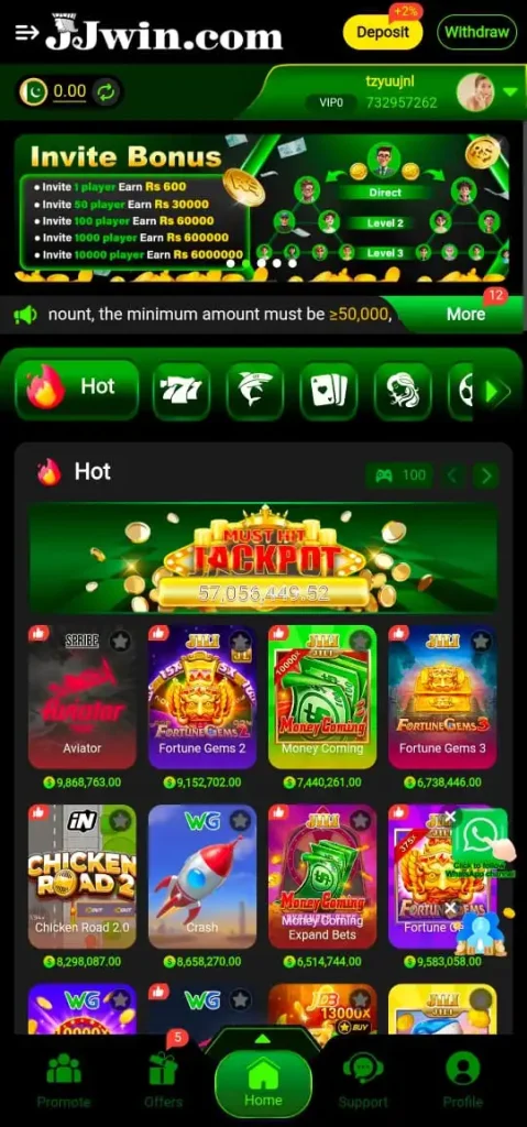 This is the best thing you will experience while using the JJWin app. No other app gives its users this advantage, but this app gives you an instant bonus or reward on your first app download. So download right now and get the reward.