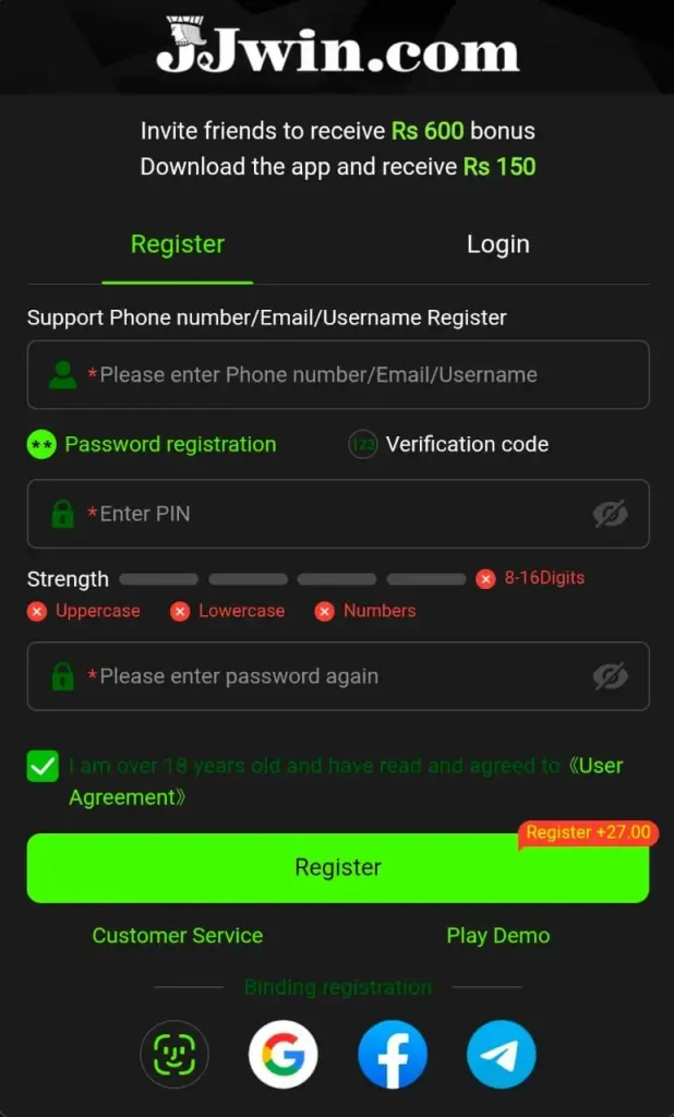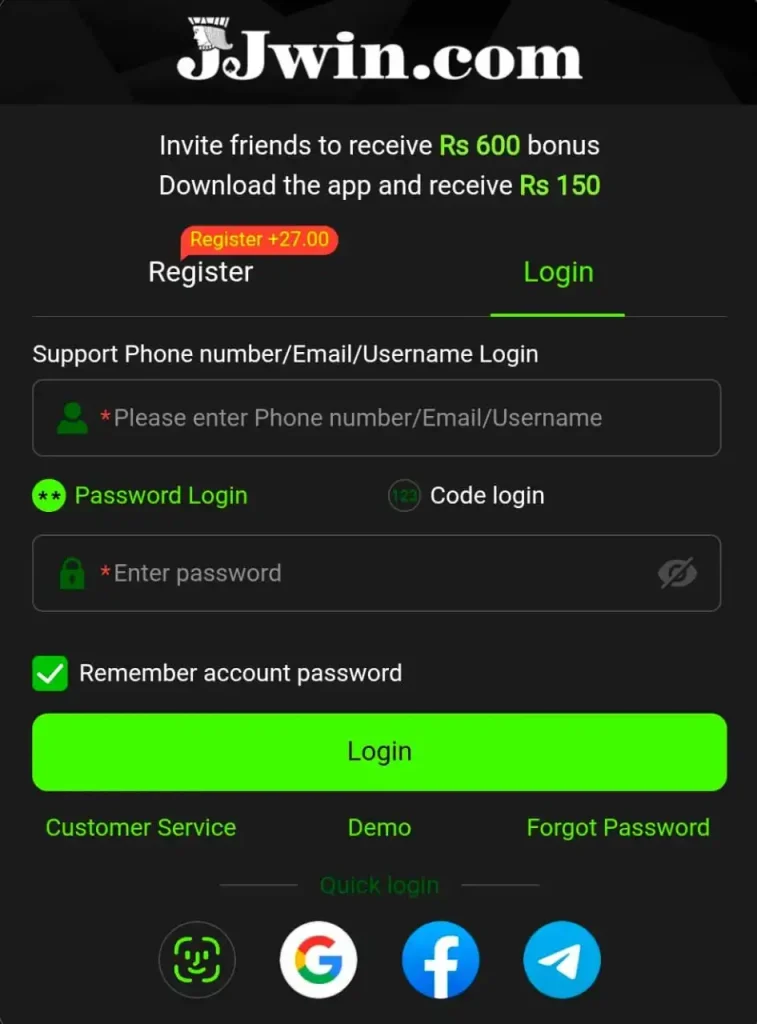 Below are the steps to register and login to the JJWin Game APK: